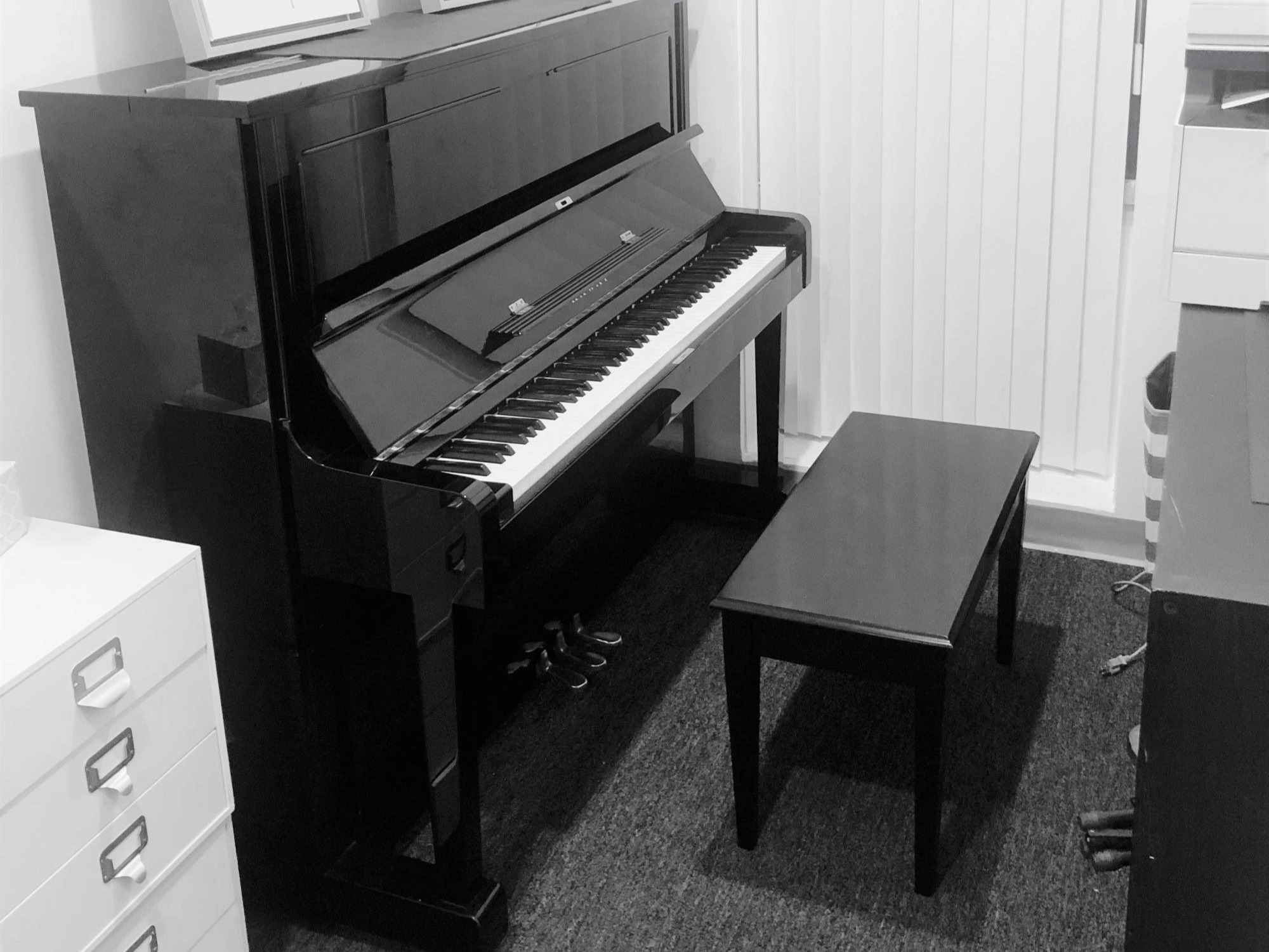 All studio rooms include quality acoustic pianos that are tuned and maintained regularly. Room rentals also include basic music equipment usage such as music stands, chairs, and tripods. If you require any additional equipment beyond what is listed please contact us.